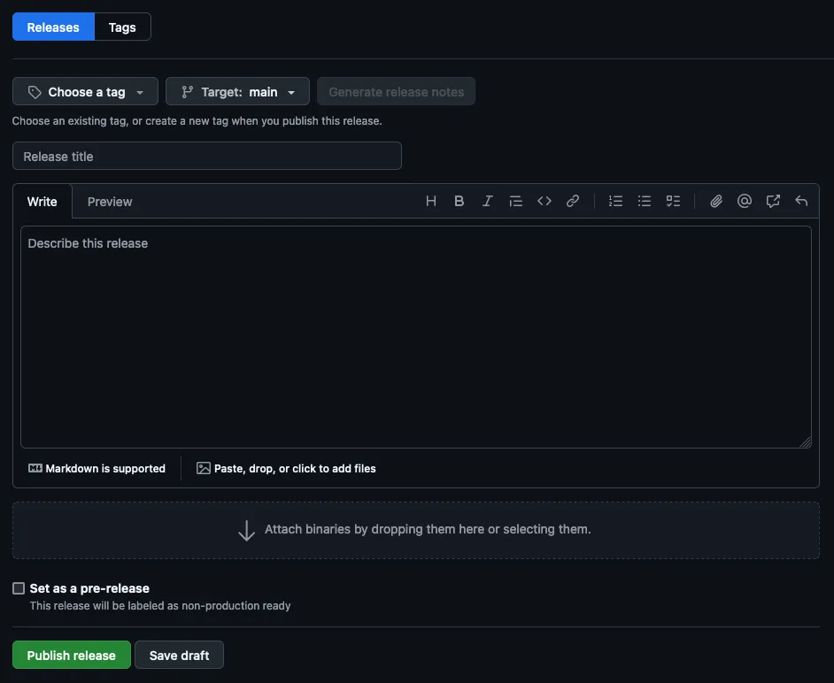 4. Enter a title for your release (e.g., “v0.1.0”).